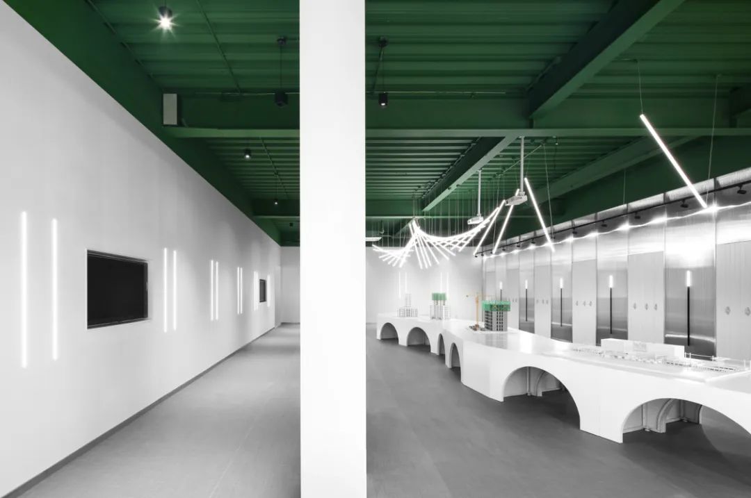 項目位置在蘇州市,裝配式建筑作為未來的建筑文化表達方式,于其展廳,設計希望借由園林的意象表達新科技的文化傳播特性,從而突出展廳所在地的地域名片,也能賦予空間傳統與未來的戲劇沖突感。